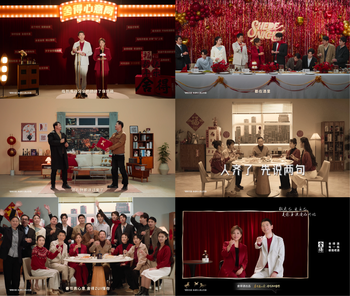 通过此次春节大片,舍得酒完成了一场有温度的情感沟通。围绕“心意”内核,舍得酒覆盖春节情感表达全维度场景,达成从“产品功能”到“情绪价值”的跃迁。同时,借助明星话题度与国民认知度,舍得酒进一步增强消费者的信赖感和亲切感,提升品牌在春节场景中的心智占领与情感渗透。