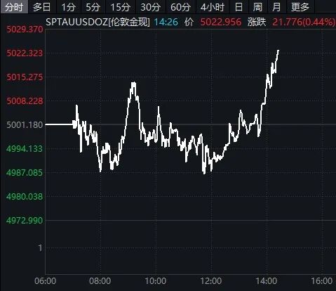 经历阶段回调后,2026年马年春节假期前夕以来,国际金价站稳5000美元/盎司高位。2月20日下午,国际现货黄金盘中拉升。
