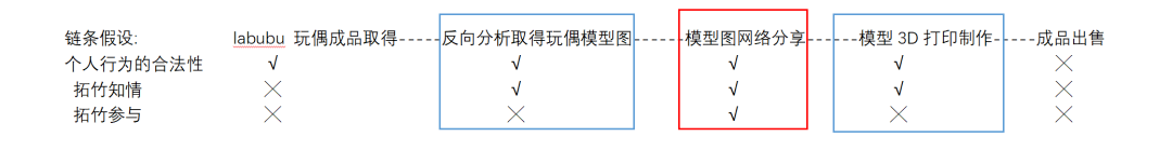2)因为无论是红框行为还是蓝框行为,都不是拓竹的单独行为,都牵涉到个人行为的合法性。也就是说,要先认定个人行为是否违法,再确定拓竹行为是否违法。