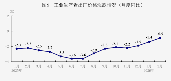 1—2月份,全国工业生产者出厂价格同比下降1.2%。分月看,1月份同比下降1.4%,环比上涨0.4%;2月份同比下降0.9%,环比上涨0.4%。1—2月份,全国工业生产者购进价格同比下降1.1%。