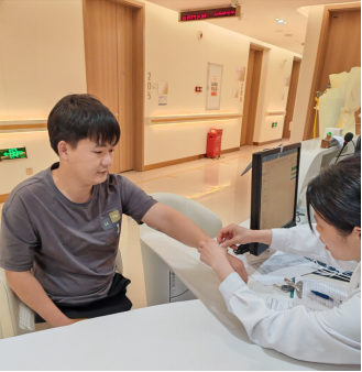 图:廖晓乐在做干细胞捐献前的体检