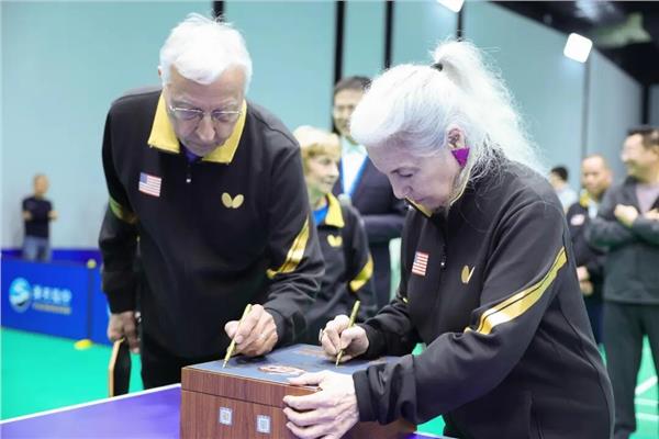 乒乓球现场交流中,代表团向洋河赠予了珍贵的签名球拍,并向洋河授予纪念牌匾,感谢洋河多年来为推动中美民间交流所作出的不懈努力。